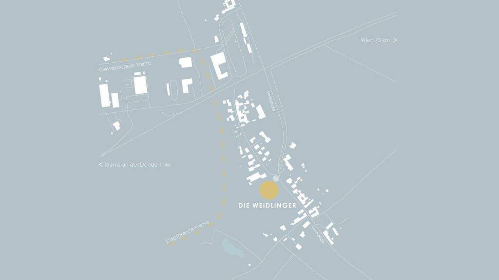 Die Wohnanlage entsteht in einer ruhigen Siedlungslage in unmittelbarer Nähe zur Bezirkshauptstadt Krems an der Donau, eingebettet in eine grüne Umgebung mit Feldern, Wiesen und sanften Hügeln.