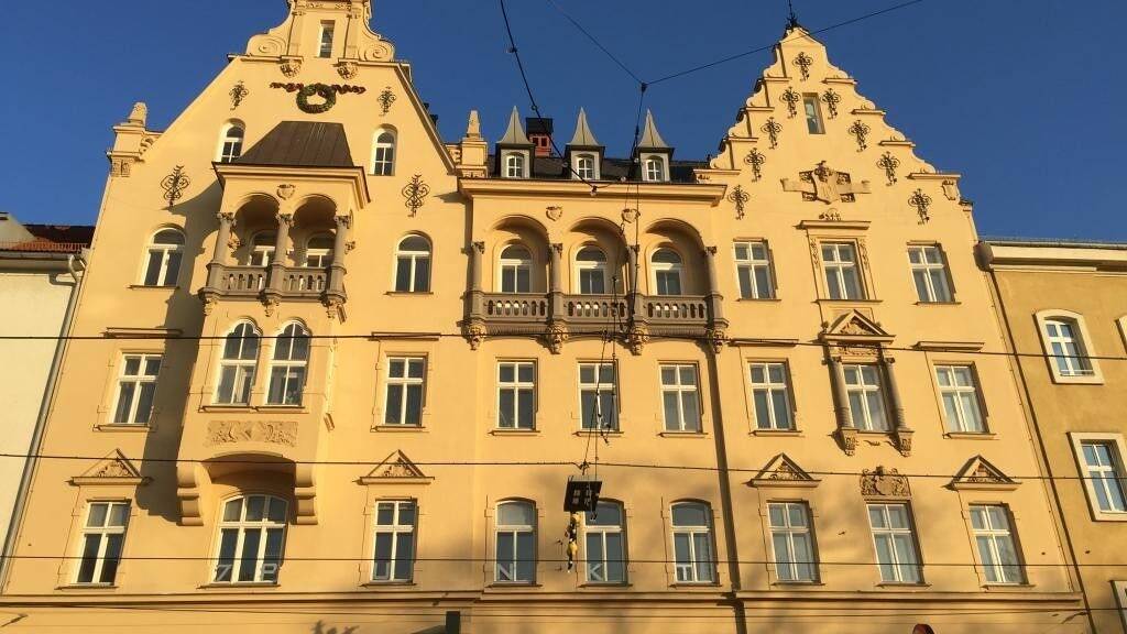 Die betreffende 2,5-Zimmer-Wohnung befindet sich im 4. OG im denkmalgeschützten "Poschacher-Haus" und besteht aus einem Vorraum, einem geräumigen Esszimmer mit integrierter Küche (komplett eingerichtet und ablösefrei!), einem Schlafzimmer, einem Badezimmer (mit Doppelwaschbecken samt Unterbauschrank und Spielgelschrank mit Licht, Badewanne samt Duscharmaturen und Duschtrennwand, Waschmaschinenanschluß und Handtuchheizkörper), einer separaten Toilette mit integrierter Bidetfunktion (mit Handwaschbecken), einem Abstellraum (unter dem Steigenaufgang), einem großen Wohnbereich im OG und einem weiteren Abstellraum.