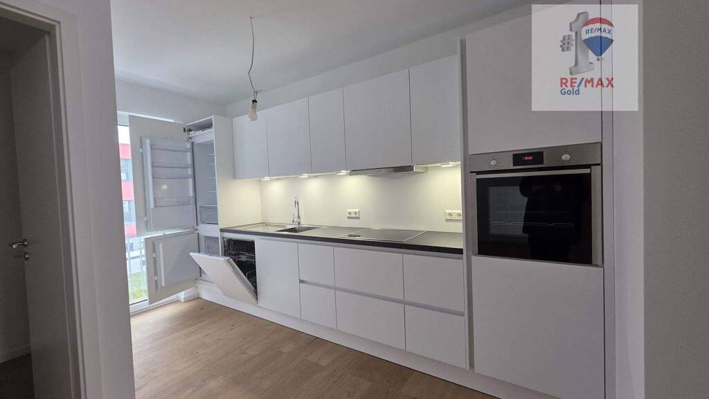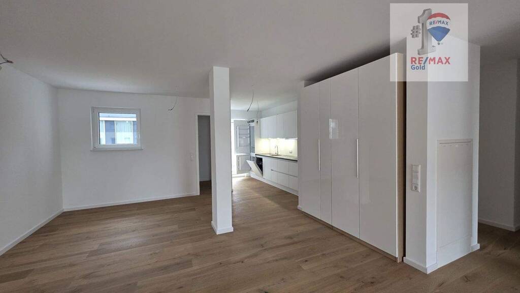 Der großzügige Wohn-, Ess- und Kochbereich mit ca. 48 m² bildet das Herzstück der Wohnung. Bodentiefe Fenster sorgen für lichtdurchflutete Räume und schaffen eine angenehme Wohnatmosphäre. Die moderne Einbauküche inklusive Elektrogeräten ist bereits vorhanden und fügt sich harmonisch in das Gesamtbild ein.