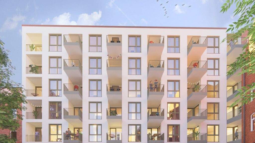 Die insgesamt 35 Wohneinheiten innerhalb des Gebäudes verteilen sich auf 1-3-Zimmer-Wohnungen mit einer Gesamtwohnfläche von ca. 2.078 m². Das sechsgeschossige Objekt im KfW-55EE-Effizienshausstandard errichtet und verfügt über zwei Hauseingänge mit jeweils einer Aufzuganlage, die vom Kellergeschoss in jede Etage reicht.