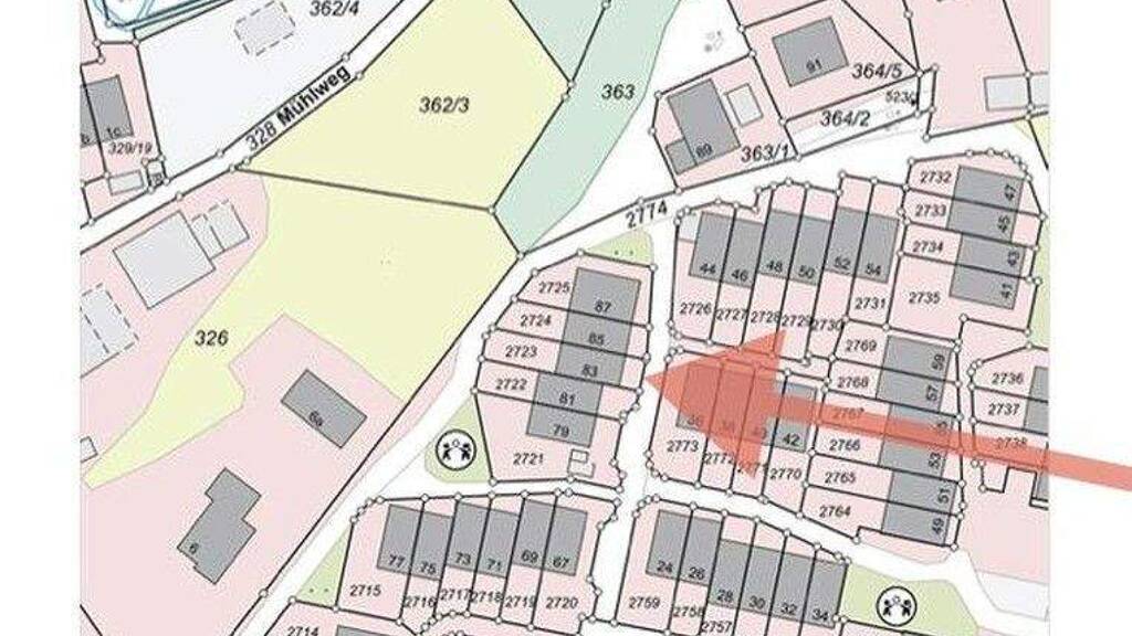 Es gibt keine parallele Hausreihe weil die kleine Siedlung (nur