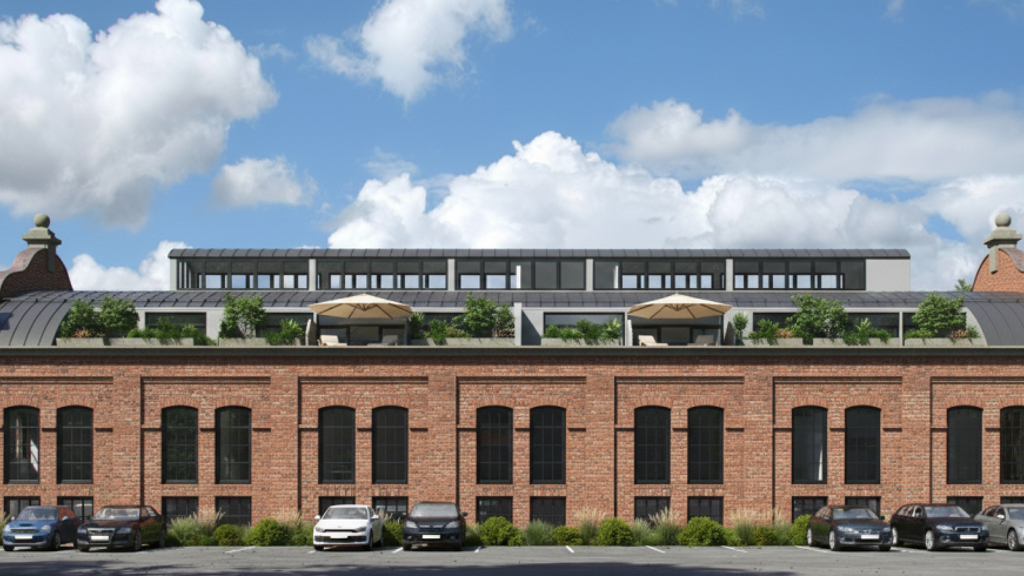 Das denkmalgeschützte, ehemalige Baumwolllager der "Alten Spinnerei" in der Bayreuther Straße 108a wird nun seiner neuen Bestimmung zugeführt. Das kleine Schmuckstück mit den geschwungenen Giebeln und dem markanten Glasdach wird umfassend saniert und neu strukturiert. Der gegliederte Backsteinbau ist 14 m breit und 35 m lang. Um den hallenartigen Innenraum als Büro- und Praxisflächen nutzen zu können, werden zwei neue Decken eingezogen, Fenster in das Mauerwerk geschnitten, Loggien im Obergeschoss eingezogen und der markante Dachreiter mit herrlichem Blick auf den Berg der Franken das "Walberla" neu aufgesetzt.