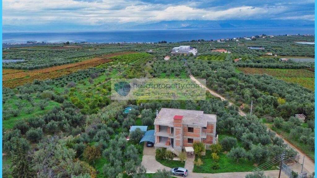 Dank der großen Fensterfronten bietet die Residenz selbst von innen einen ungestörten Blick auf das Meer und den Golf von Korinth. Die Terrasse eignet sich ideal für die Gestaltung eines Dachgartens und bietet so einen einzigartigen Ausblick und Raum zum Entspannen.
