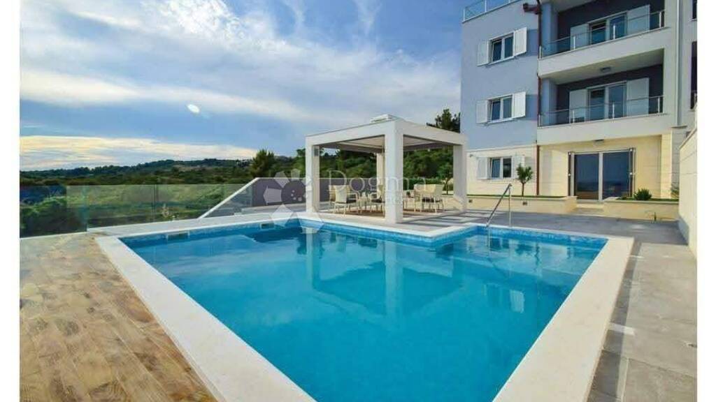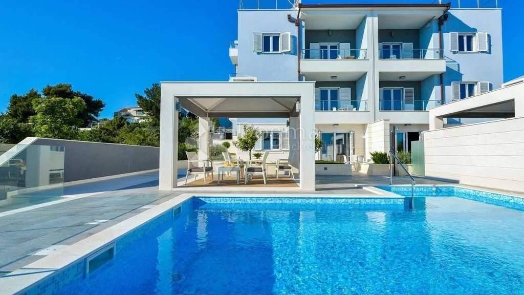 In erstklassiger Lage in Rogoznica, direkt am kristallklaren Meer, befindet sich diese eindrucksvolle Villa auf einem gepflegten Grundstück von 1.100 m mit einer Wohnfläche von insgesamt 800 m.