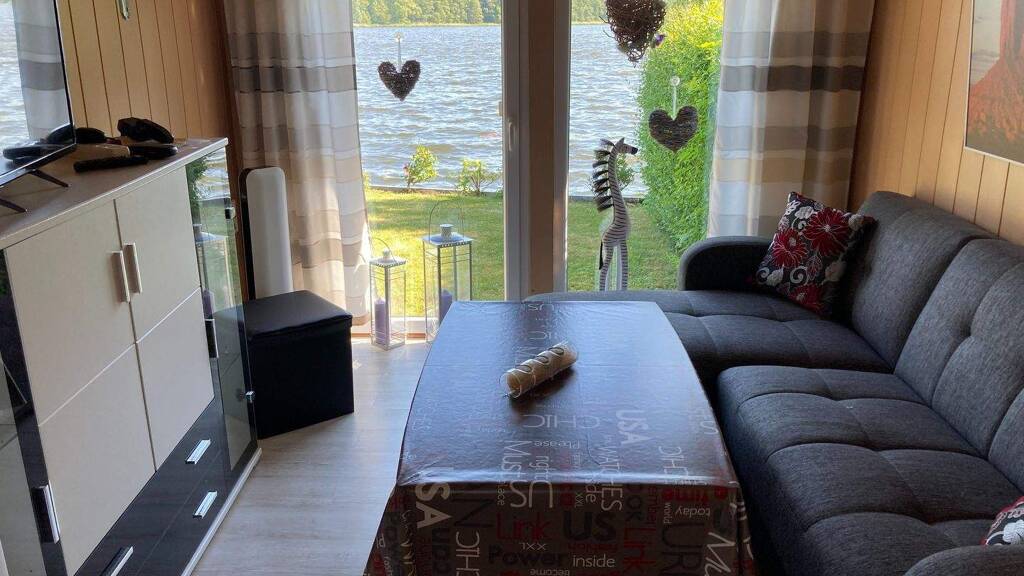 Auf dem großen Seegrundstück am Schwedtsee befinden sich mehrere separate Gebäude und Anlagen. Gleich am Eingang zum Grundstück steht rechts ein Bungalow, weiter folgen auf der rechten Grundstücksseite ein Abstellschuppen und direkt am Seeufer ein Sommerhaus mit einem Raum. Links stehen viele Obstbäume, dann folgt ein Pavillon und direkt am Ufer zwei Bootsschuppen und ein separater Bootssteg. Der Bungalow hat ca. 54 m² Wohnfläche, Wohnzimmer mit amerikanischer Küche, Schlafzimmer, kleines Gästezimmer, Duschbad -winterfest, zur Zeit vermietet, freiwerdend. Beheizt wird der Bungalow mit einer Gaszentralheizung. Warmwasser wird mittels 30l Boiler bereitet. Auf der überdachten, ca. 12 m² großen Terrasse kann man auch an Regentagen sitzen, sie liegt sehr geschützt.