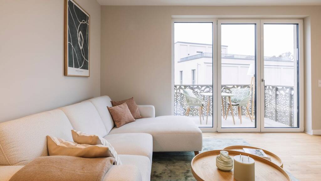 WOHNEN IN BESTER NACHBARSCHAFT Die Eigentumswohnungen am Französischen Garten werden höchsten Ansprüchen gerecht - sie vereinen stilvolle Zurückgezogenheit mit erstklassigem Wohnkomfort. So entsteht Wohnraum, der die stille Oase des Rückzugs harmonisch mit dem urbanen Leben der Stadt verbindet. Die barrierefreien Grundrisse sind durchweg zukunftsorientiert gestaltet und bieten Raum für individuelle Entfaltung. Von der nachhaltigen Bauweise bis zur durchdachten Ausstattung ist alles auf modernes Wohnen abgestimmt. Mit einladenden Balkonen, Terrassen und Dachterrassen wird Ihr neues Zuhause um Ihren ganz persönlichen Außenbereich erweitert. Ein Ort, an dem Sie den Tag bei frischer Luft ausklingen lassen oder in geselliger Runde unvergessliche Momente erleben können. Hier genießen Sie den Freiraum, der Ihrem Leben einen zusätzlichen Wohlfühlfaktor verleiht.