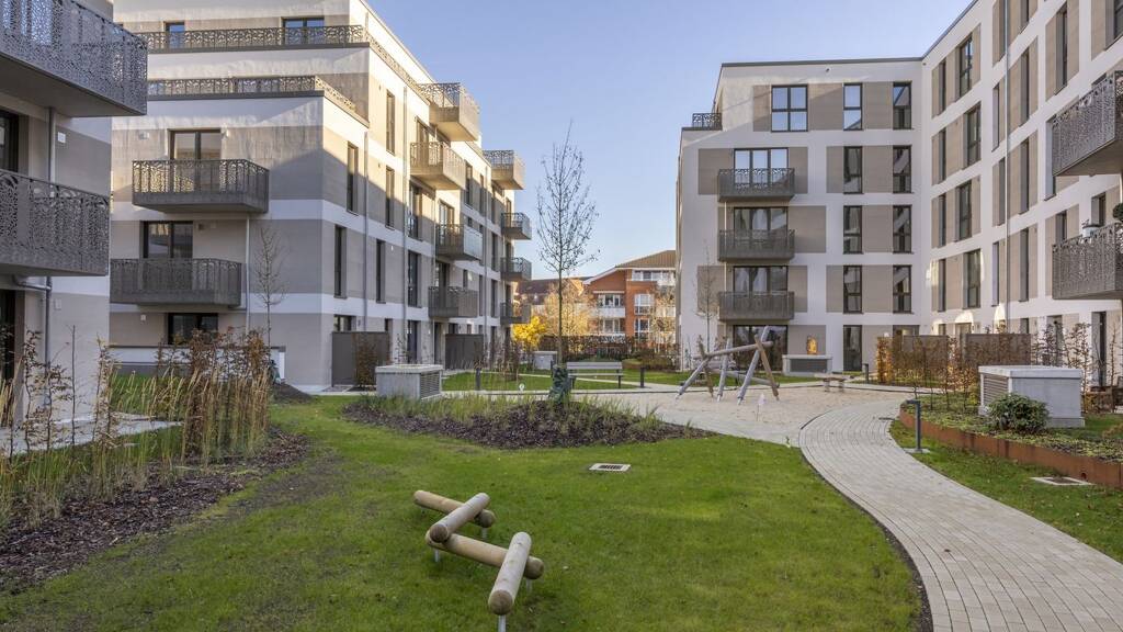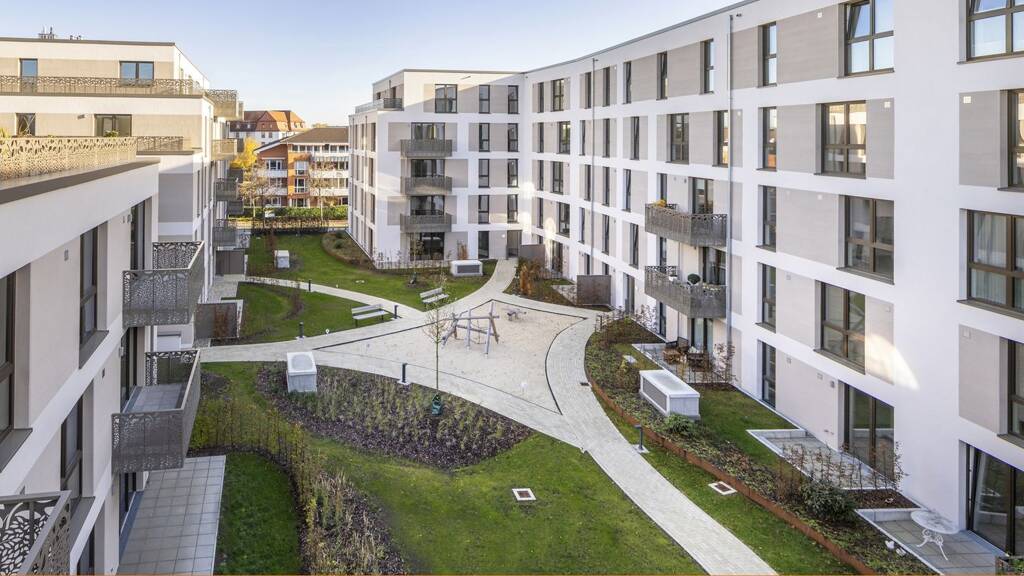 * Besonders nachhaltige Bauweise (EH 40 NH) für eine energieeffiziente Zukunft * Einladende Gemeinschaftsbereiche im abwechslungsreich gestalteten Innenhof * 44 Eigentumswohnungen verteilt auf 2 Gebäude * 1 bis 4 Zimmer-Wohnungen * Wohnungsgrößen von ca. 43 m² bis ca. 169 m² * 46 Tiefgaragenstellplätze sowie Car-Sharing E-Autos zur Nutzung * Fußbodenheizung und Eichenparkett (Schiffsboden) * Barrierefreie Wohnungen für alle Lebensphasen * Gesamtensemble mit Mietwohnungen in einem separaten Gebäude