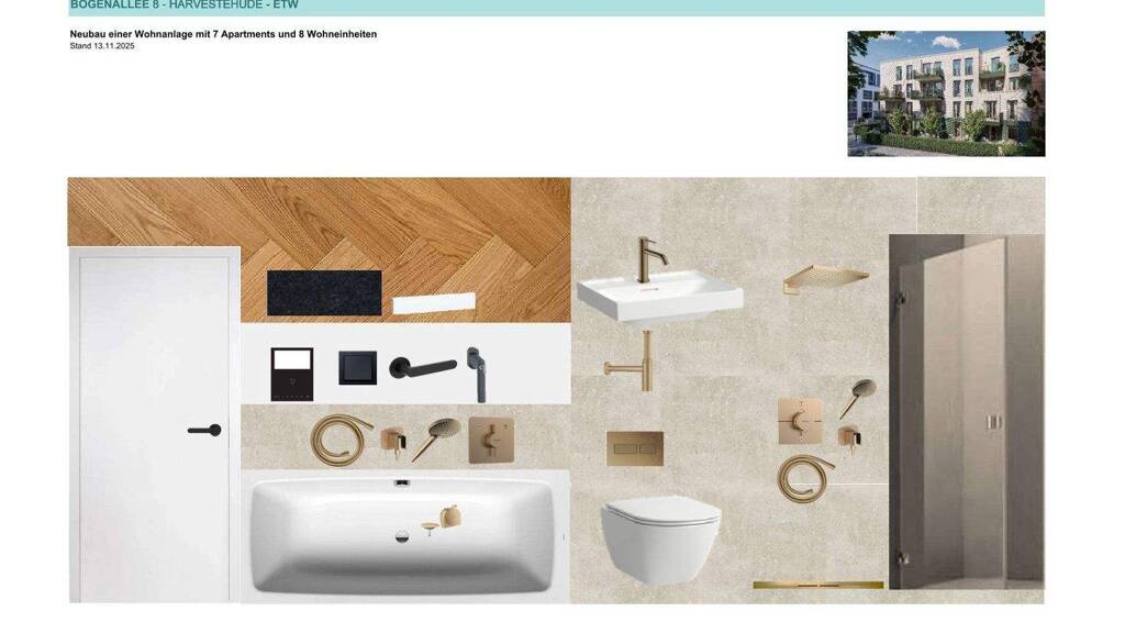 Außergewöhnliche Material- und Farbelemente verleihen der Fassade Charakter. Ein stockwerkhoher Sockel aus grün glasierten Steinen bildet einen ausdrucksstarken Kontrast zu den Holzpaneelen Im Eingangsbereich. Aus energetischen Gründen ist das Gebäude mit einem zweischaligen Mauerwerk aus Natursteinen mit einem außenliegenden beigen Verblendstein ausgeführt. Auch die Energieversorgung ist konsequent nachhaltig angelegt. Von der effizienten und umweltfreundlichen Fernwärmelösung bis zur Photovoltaikanlage auf dem Dach – das mit einer extensiven Begrünung bepflanzt wird. Die 3-fach verglasten Fenster haben eine Sonnenschutzverglasung und selbstverständlich hat jede Wohnung Glasfaseranschluss.