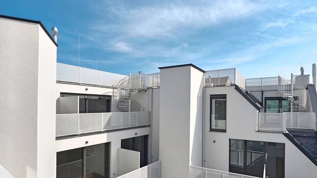 * Eine Wendeltreppe führt hoch zur privaten Dachterrasse (ca. 55 m²)