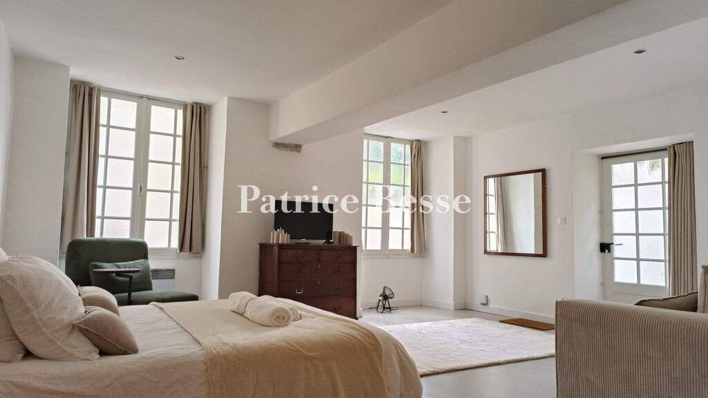 This level can be reached via the courtyard. The hall plays host to a tuffeau stone spiral staircase climbing to the upper floors. The ground floor is currently occupied by a PRM compatible holiday let. A bedroom opens out via a door onto the garden outside. In the fitted kitchen, there is a carefully restored, monumental tuffeau stone fireplace as well as an adjoining bread oven. The kitchen is followed by a bathroom with a shower and a whirlpool bath. The flooring is made up of an alternation of polished concrete and terracotta tiles. The main rooms face the street and the courtyard.