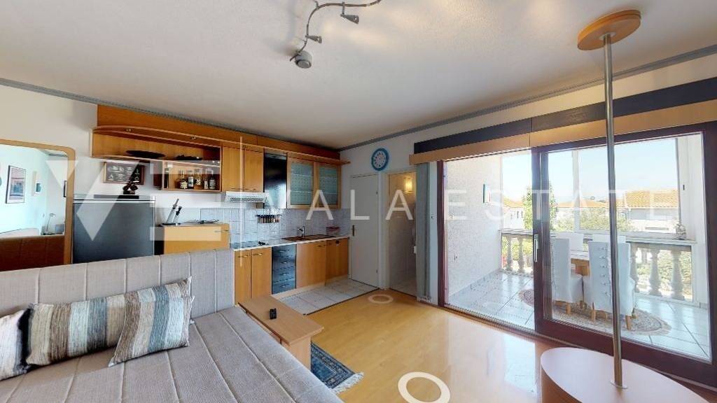 Immobilien auf der Insel Krk, rund um Malinska zum Verkauf steht eine komfortable Einzimmer Ferienwohnung in sehr attraktiver Lage in der Nähe schöner Strände. Die Ferienwohnung mit einer Gesamtwohnfläche von 47,53 m2 befindet sich im ersten Stock eines Mehrfamilienhauses und besteht aus einem Vorraum, einer Küche mit Esszimmer, einem Wohnzimmer mit Ausgang zur Loggia, einem Schlafzimmer und einem Badezimmer. Er hat einen Parkplatz im Hof des Hauses. Es wird möbliert verkauft, verfügt über ordnungsgemäße Unterlagen und ist bezugsfertig. Es liegt in ruhiger Lage, nur 400 m vom Meer und schönen Stränden entfernt.