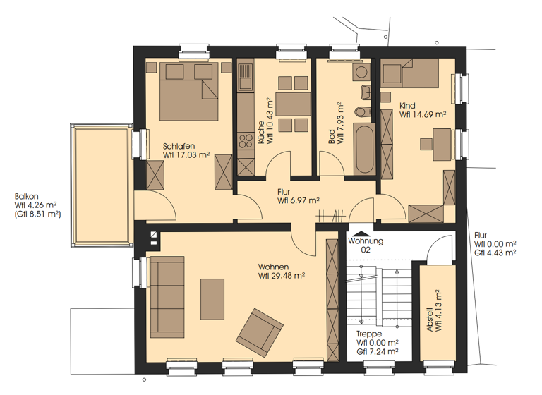 3 Zimmer • 95 m² • frei ab 01.03.2026