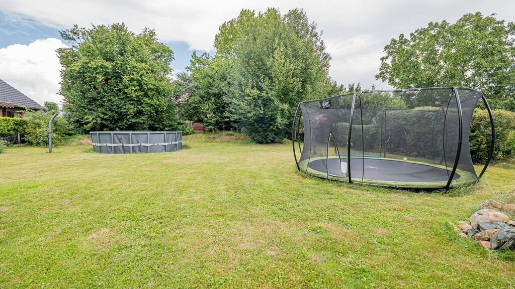 Auch die Außenanlage überzeugt auf ganzer Linie: Zwei PKW-Stellplätze und zwei weitere unter dem großzügigen Carport bieten ausreichend Platz für Fahrzeuge. Der Carport führt direkt in den hinteren Gartenbereich, wo weitere Flächen für Spielgeräte, Gartenprojekte oder Entspannung zur Verfügung stehen. Der Garten selbst ist weitläufig, grün und bietet viele Möglichkeiten zur individuellen Gestaltung. Eine große Terrasse lädt zum Verweilen ein, und ein zusätzlicher Geräteschuppen sorgt für Ordnung und Stauraum.