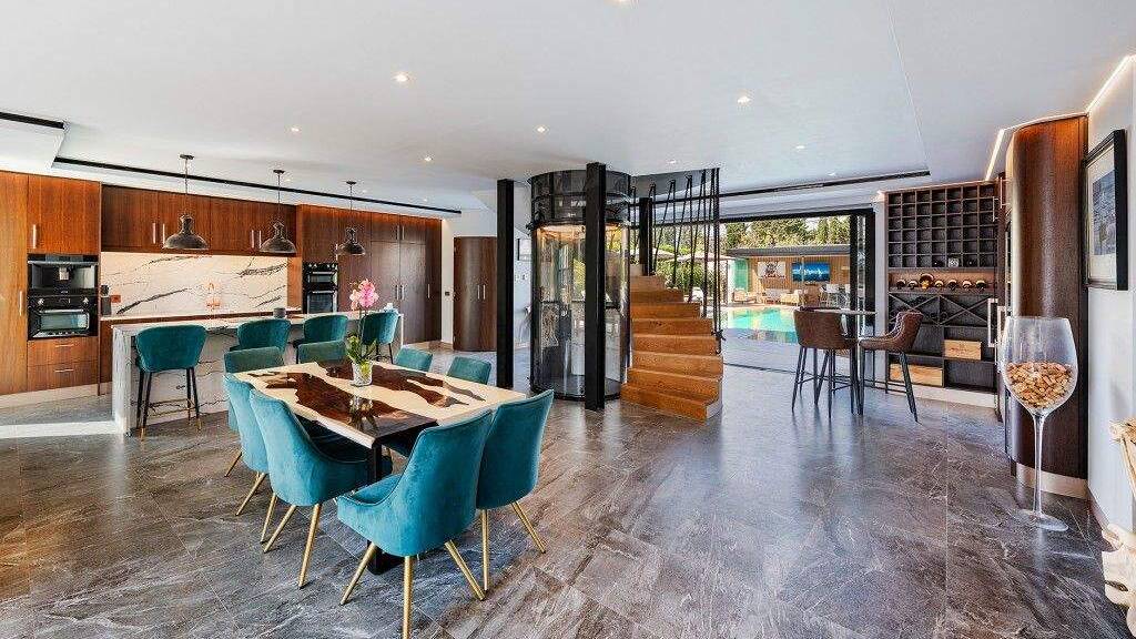 Diese Villa bietet eine gro?z?gige Wohnfl?che von rund 408 m?, darunter vier Schlafzimmer und f?nf Badezimmer sowie einen Glasaufzug, der einen einfachen Zugang zu jeder Ebene erm?glicht.