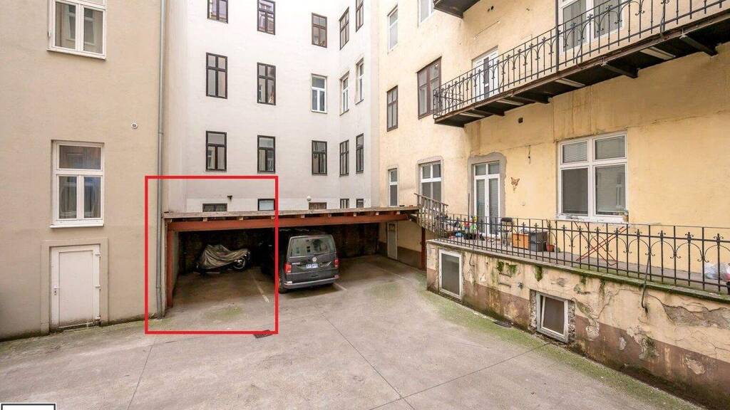 * Stellplatz im Haus (Carport - siehe Foto rote Markierung)