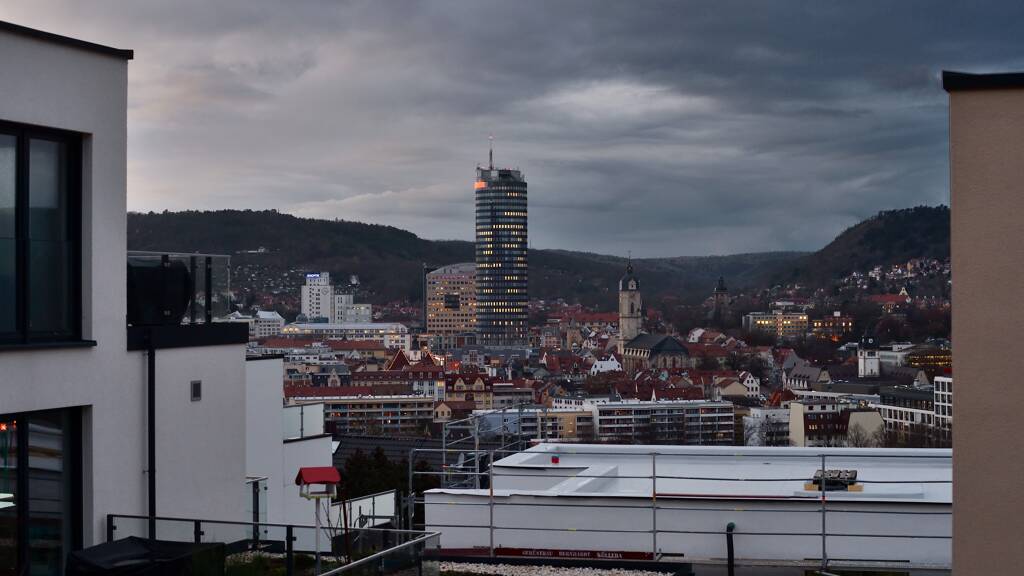 Dank der sonnigen Hanglage sind die großzügigen Räume stets lichtdurchflutet. Die Wohnung verfügt über einen großen Balkon, von dem aus Sie einen einzigartigen Blick über die Stadt Jena genießen können.