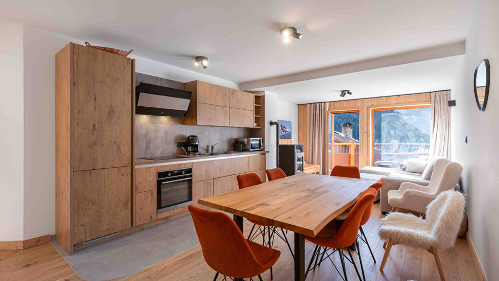 In addition, the apartment benefits from access to the spa with swimming pool and sauna, as well as to a shared ski room with a private locker, as well as a parking space in the underground garage.