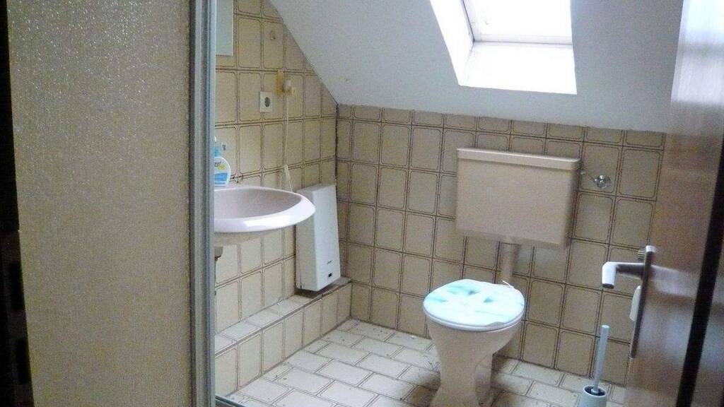 - Das Bad verfügt über Waschtisch, Dusche, WC, Fenster.