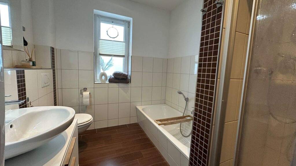 - Badezimmer: Badewanne, Bad mit Dusche, Bad mit Fenster