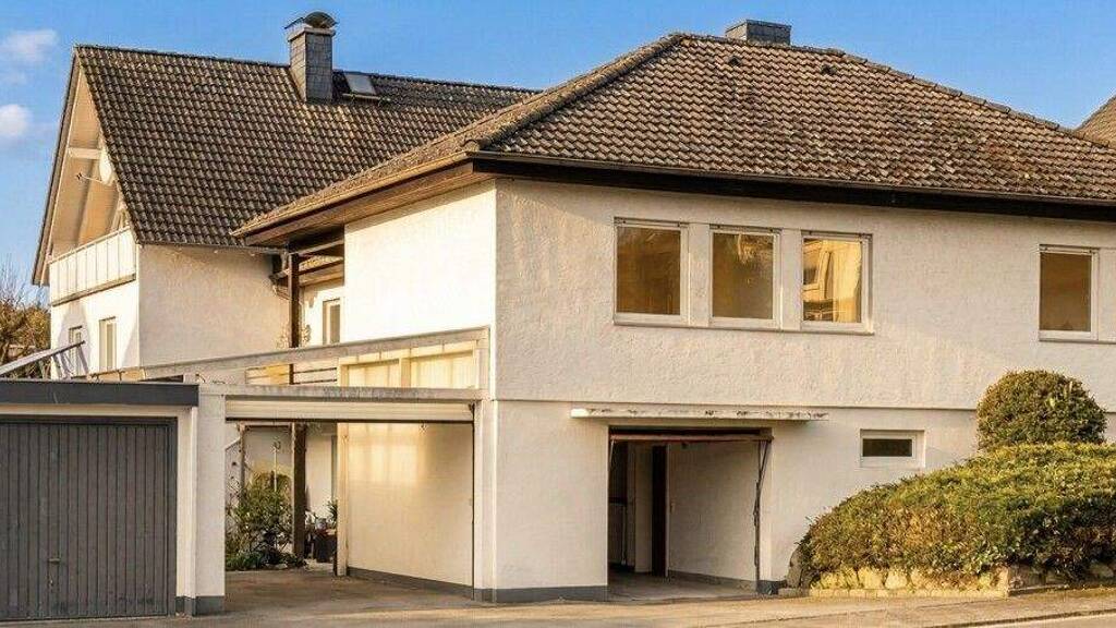 Parken: Eine Garage im Haus, eine separate Garage sowie drei zusätzliche Außenstellplätze. Eine befahrbare, überdachte Fläche (ca. 25 m²) dient flexibel als Carport.
