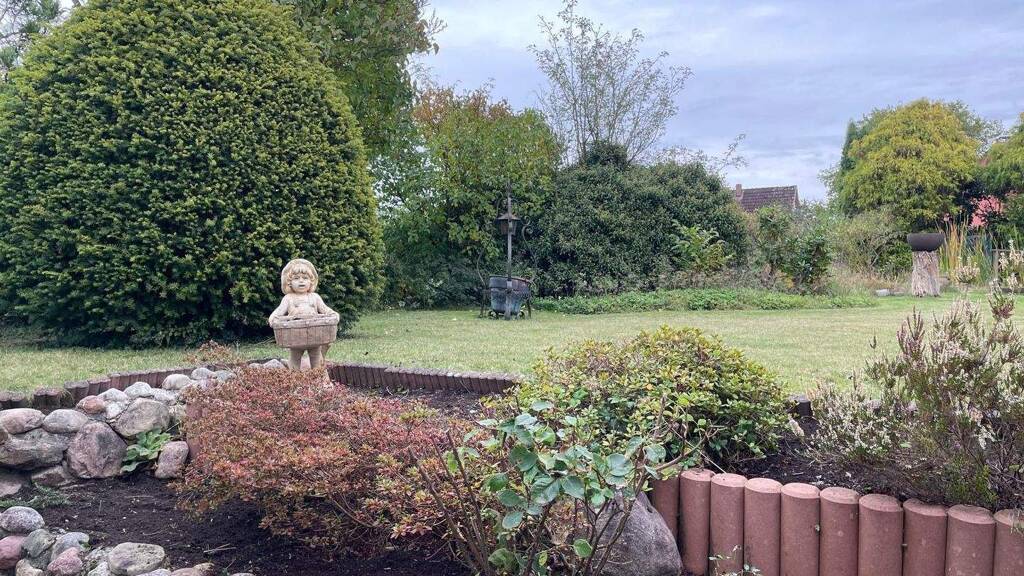 Das ca. 800 m² große Wohngrundstück überzeugt durch seine Größe und vielseitige Nutzungsmöglichkeiten. Der Garten mit Teichanlage und Gartenhütte bietet ausreichend Platz für Spiel, Erholung und individuelle Gestaltungsideen.