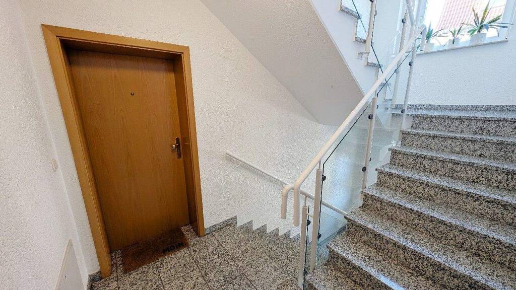 Praktische Details wie Rollläden und eine durchdachte Einbauküche machen das Wohnen angenehm und unkompliziert. Ein weiterer Abstellraum innerhalb der Wohnung sowie zusätzlicher Stauraum im Dachboden bieten Ihnen ausreichend Platz für all Ihre Utensilien. Der allgemeine Trockenraum im Dachgeschoss eignet sich zudem hervorragend zum Wäschetrocknen.