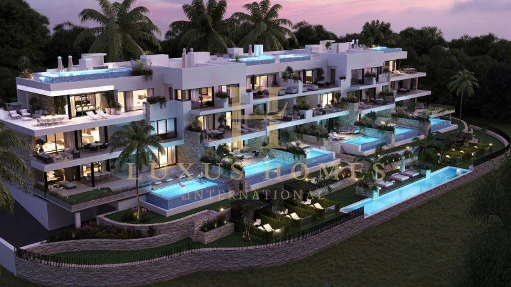 Wir präsentieren Ihnen stolz eine neue Art von High-End-Luxus-Apartments auf einem Golfplatz mit einer Kombination aus moderner und traditioneller mediterraner Architektur. Es ist eine Mischung aus Wohnung und Villa. Die erste Anlage besteht aus 16 Luxusapartments mit großen Terrassen und Blick auf die umliegende Grünfläche. Alle Wohnungen im Erdgeschoss und im obersten Stockwerk haben einen eigenen Swimmingpool. Die Wohnungen im mittleren Stockwerk sind alle für einen Jacuzzi vorbereitet. Alle Wohnungen haben Zugang zum Gemeinschaftspool und zum Fitnessraum.