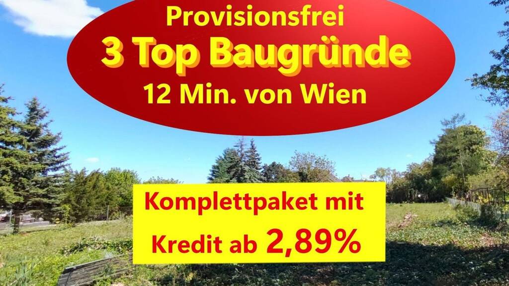 3 Baugründe mit Kredit 2,89% * für Ihr Traumhaus 12 Min. von Wien