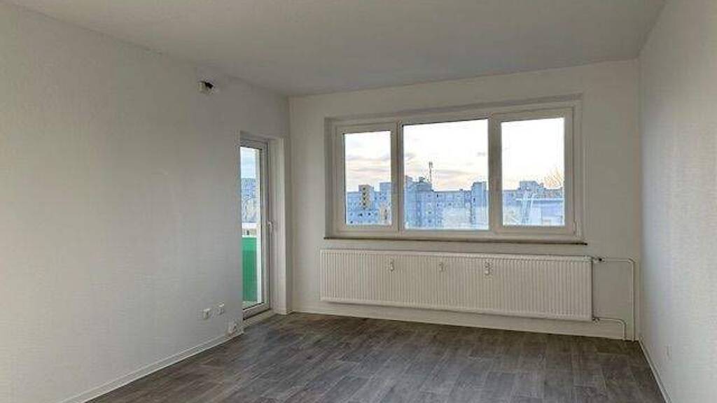 Diese frisch sanierte Etagenwohnung im siebten Stock bietet auf knapp 107 m² vier Zimmer: ein Wohnzimmer mit Balkonzugang, drei weitere Zimmer, eine Küche mit Einbauküche, ein Badezimmer sowie ein Gäste-WC.
