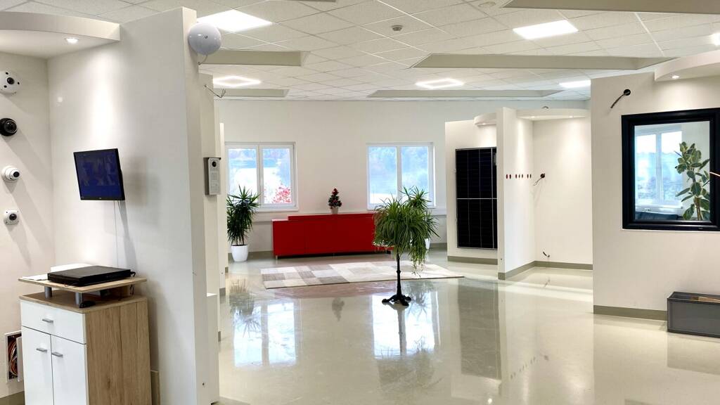 * Bürogebäude mit einer Größe von ca. 140m² Beherbergt Büroräumlichkeiten, Abstellräume, WC, Heizraum * Wohntrakt OG Über dem Bürogebäude befindet sich der Wohntrakt mit ca. 165 m² Wohnfläche und einer 95 m² großen Dachterrasse. Zugehörig zum Wohntrakt gibt es eine Garage und ein Carport für zwei Fahrzeuge. * Nebengebäude für das Personal mit ca. 50m² Umkleiden, Aufenthaltsraum und Toiletten * Schauraum/Werkstätte EG Gegenüber befinden sich die Werkstätten inkl. Büroflächen, Ausstellungsflächen und Lagerräume auf ca. 600 m² Nutzfläche. Zusätzlich bieten auch die Kellerräume des Gebäudes genügend Stauraum. * Werkstätte OG Im Obergeschoss des Gebäudes stehen noch ungefähr 650m² zur Verfügung. Diese Räumlichkeiten können ganz einfach nach Belieben adaptiert werden. Etwa 200m² entfallen für das sich hier befindliche Hochregallager.