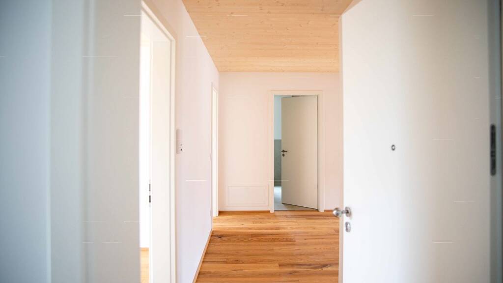 Auf einem attraktiven Grundstück entstehen zwei stilvolle Mehrfamilienhäuser in nachhaltiger Holzständerbauweise mit jeweils neun hochwertig ausgestatteten Wohneinheiten. Auf jeder Etage befinden sich drei Wohnungen, die bequem über das Treppenhaus oder den Aufzug erreichbar sind. Die Fertigstellung ist für das Jahr 2026 geplant.