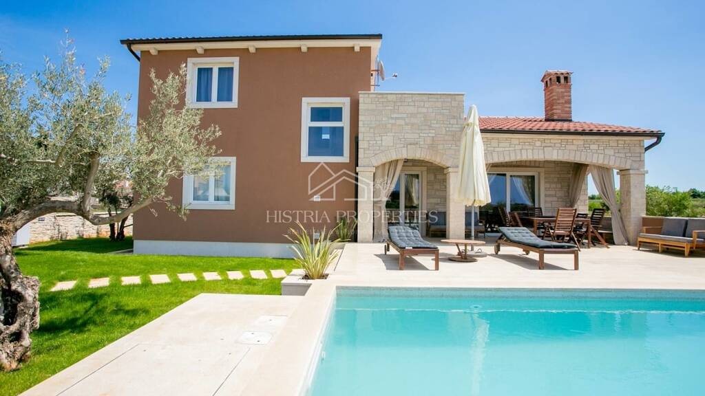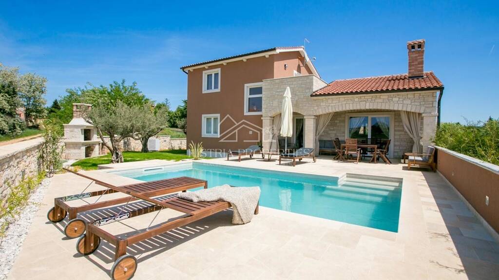 Dieses voll ausgestattete Haus mit Swimmingpool befindet sich in einem kleinen istrischen Dorf unweit von Porec und seinen gepflegten Stränden.