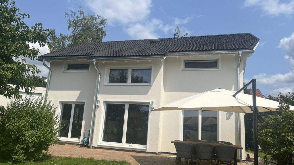Energetisches Vorbild: KfW 70 Standard In Zeiten steigender Energiekosten sind Sie hier bestens aufgestellt. Die Sole-Wasser-Wärmepumpe (Erdwärme) sorgt in Verbindung mit der Fußbodenheizung und einer kontrollierten Lüftungsanlage mit Wärmerückgewinnung für ein perfektes Raumklima bei minimalen Betriebskosten. Das ökologische Konzept wird durch eine 6 m³ Betonzisterne ergänzt, die Waschmaschine und Toiletten mit Regenwasser speist. Eine PV-Anlage auf der Garage (2025 installiert) deckt einen Teil Ihres Strombedarfs, während das Hausdach bereits für eine große Anlage vorgerüstet ist.