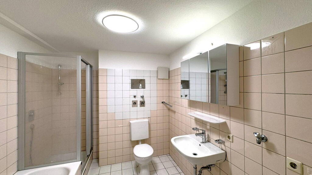 - Großes Bad mit Dusche, Badewanne und Waschmaschinenanschluss