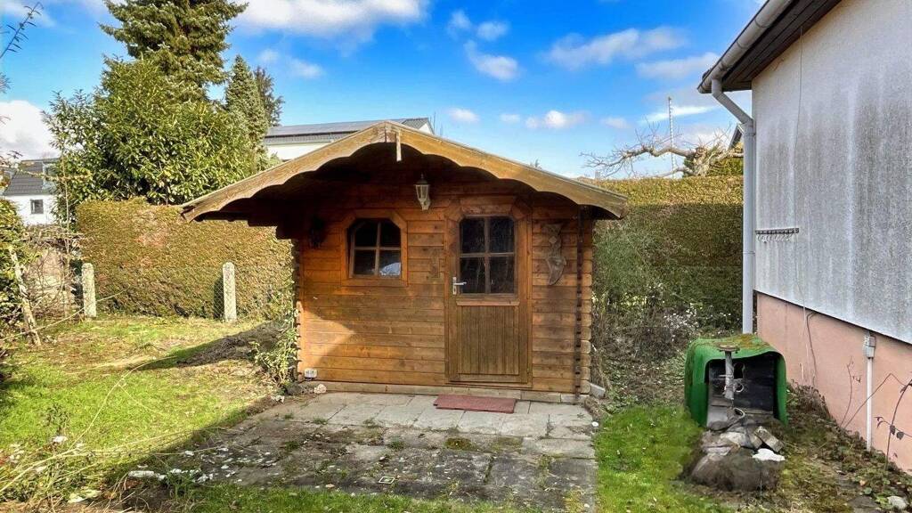 Das 357 m² große Grundstück bietet einen gepflegten Garten mit ausreichend Platz zum Entspannen. Ein Gartenhäuschen sorgt für zusätzlichen Stauraum.