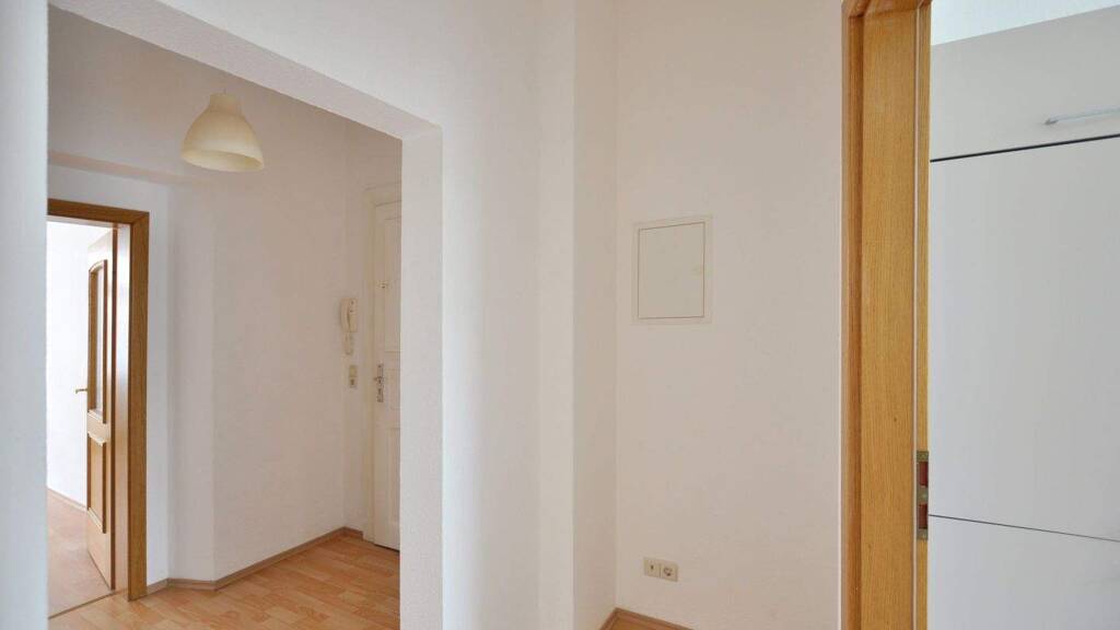 Im westlich vom Zentrum gelegenen Leipziger Stadtteil Leutzsch, befindet sich im Hochparterre eines Mehrfamilienhauses dieses Singlewohnung.