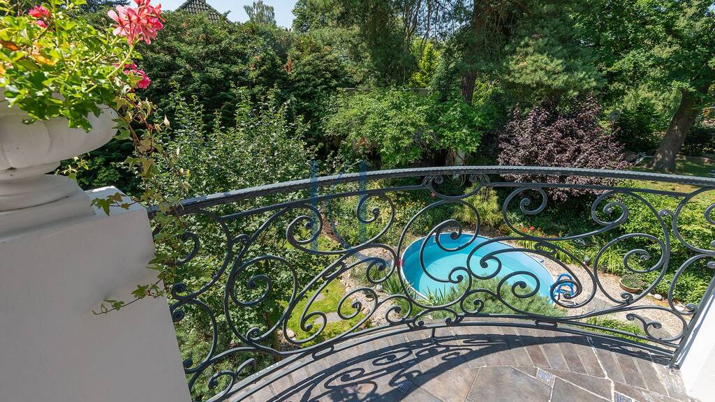Weitere Ausstattung: Balkon, Terrasse, Garten, Keller (2,45 m Deckenhöhe) mit separatem Eingang, Vollbad, Duschbad, Pool, Einbauküche, Gäste-WC, Kamin