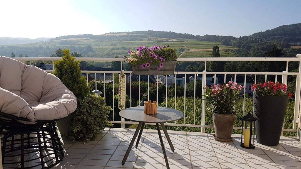 Dank seiner großen Fenster ist das Apartment den ganzen Tag über außergewöhnlich hell. Die beiden Balkone bieten zudem einen herrlichen freien Blick auf die umliegenden Weinberge und schaffen eine besonders angenehme und ruhige Wohnatmosphäre.