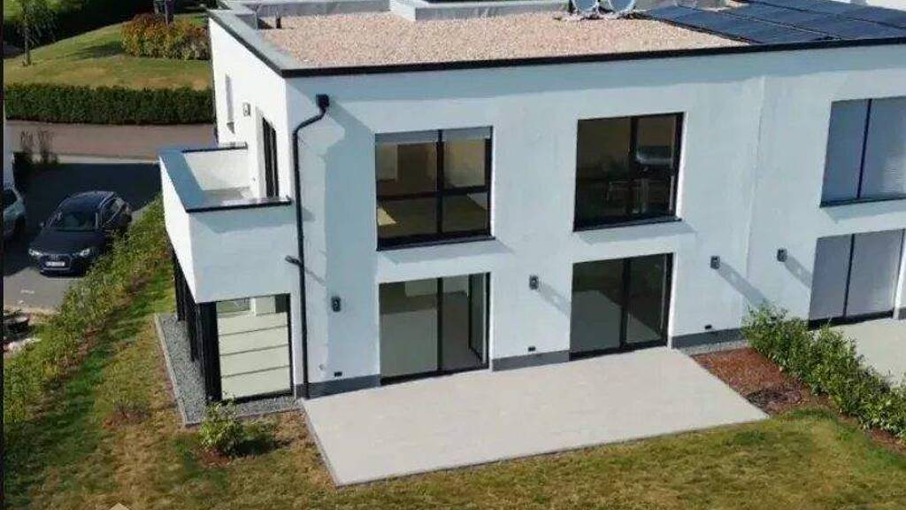 Diese neue Doppelhaushälfte befindet sich in Kruchten in einer ruhigen und familienfreundlichen Wohnlage. Das Haus wurde 2024 in hochwertiger Massivbauweise erbaut und umfasst eine Wohnfläche von ca. 171 m². Das Doppelhaus ist großzügig und hell und bietet das perfekte Zuhause für die ganze Familie. Mit insgesamt drei Schlafzimmern und einem Büro, sowie einem innenliegenden Duschbad im Erdgeschoss und einem hellen Tageslichtbad mit Badewanne im OG, vereint es alle notwendigen Annehmlichkeiten und verfügt über ausreichend Platz. Die Küche ist bereits geplant und kann auf Wunsch realisiert werden. Hervorzuheben ist die wunderschöne Wohnlage. Inmitten grüner Natur und in einer sehr schönen und ruhigen Wohngegend gelegen, können Sie hier in Ruhe dem stressigen Alltag entfliehen und ihr Leben genießen. Auch für Pendler ist die Lage aufgrund der Nähe zu Luxemburg ideal.