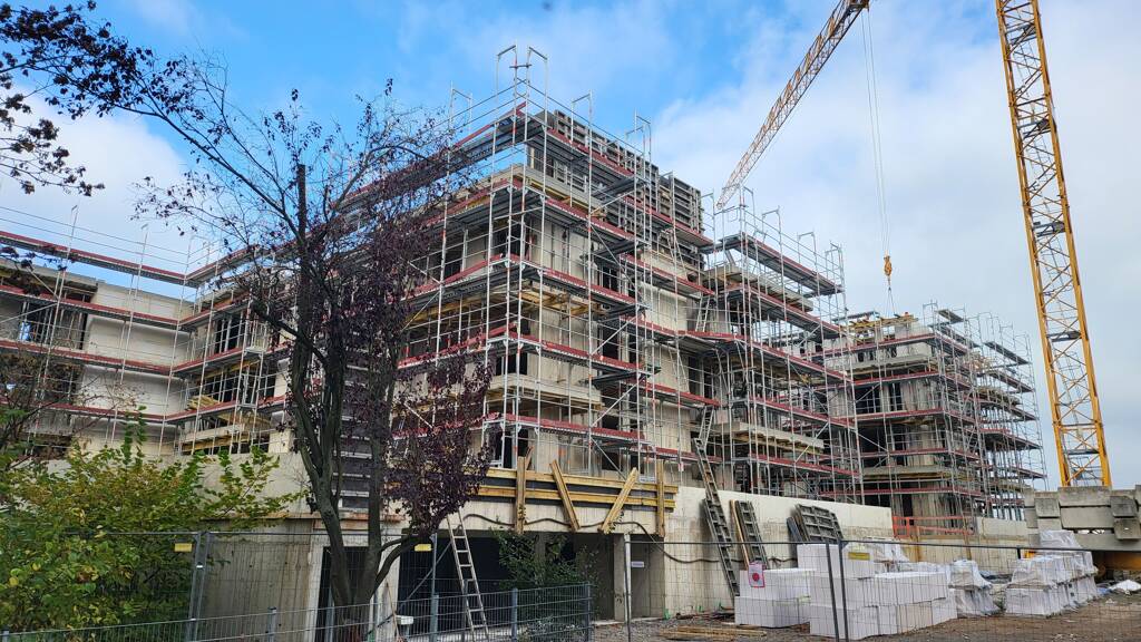 "Alle Wohnungen erhalten entweder Gartenanteile, Balkone, Terrassen oder Dachterrassen, die zu den ruhigen und großzügigen Grünflächen ausgerichtet