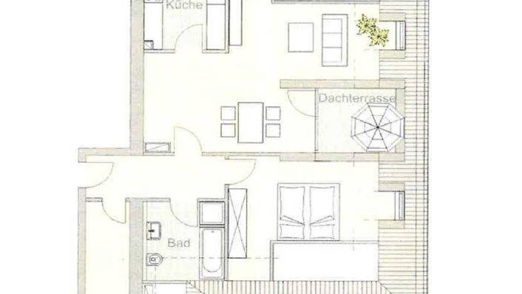 Die Wohnung befindet sich im 2. Obergeschoss (Dachgeschoss) und verfügt über einen ansprechend geschnittenen Wohn-Essbereich, einem hellen Schlafzimmer, einer Küche, sowie einem modernen Badezimmer mit Badewanne, Dusche, Waschbecken und WC.