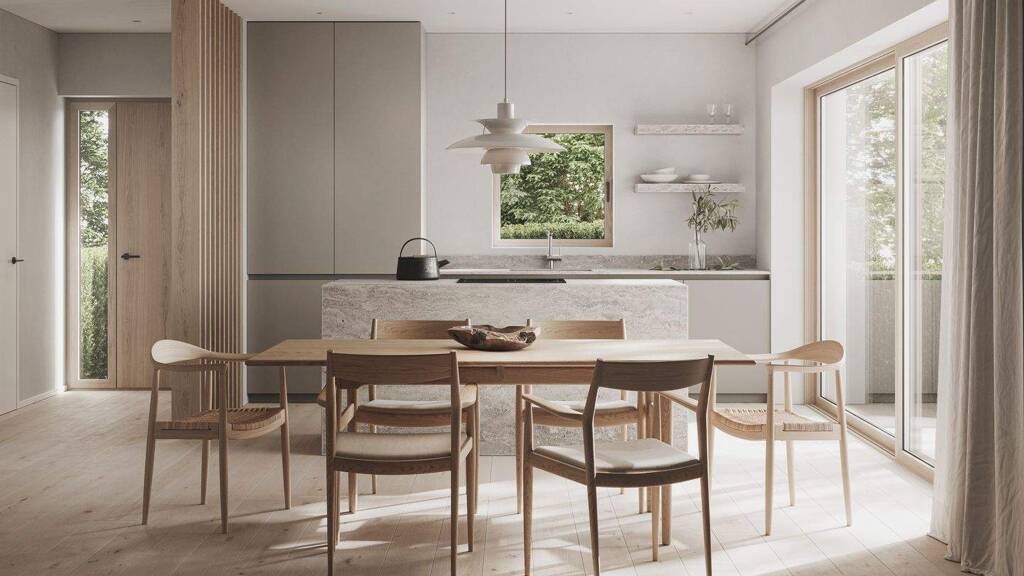 - Hochwertiges Eichenparkett in allen Wohnräumen und in der offenen Küche - Holz-Aluminium-Fenster mit Alu-Vorsatzschale und 3-fach-Verglasung - Große, bodentiefe Fensterfronten - Hochwertiges Bad mit Marken-Sanitärausstattung, bodengleicher Dusche und Feinsteinzeugfliesen und separatem WC - LED-Deckenstrahler im Bad, Flur und Küche - Teilweise elektrisch gesteuerte Aluminium-Rollläden - Komfortable Niedertemperatur-Fußbodenheizung mit Raumthermostatsteuerung - Effiziente Luftwärmepumpe, unterstützt durch eine Photovoltaikanlage - Kontrollierte Wohnraumlüftung mit Wärmerückgewinnung - Personenaufzug - Video-Gegensprechanlage - Zwei Tiefgaragen-Einzelstellplätze mit Vorrüstung für E-Mobilität - Fahrradabstellplätze im Außenbereich - Energieeffizienzklasse A+ - KfW-Effizienzhaus 40 Standard