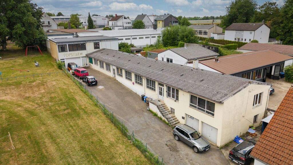 Willkommen in diesem markanten Gewerbeensemble aus dem Jahr 1950, das einst als Schuhfabrik diente und heute vielfältige Nutzungsmöglichkeiten bietet.