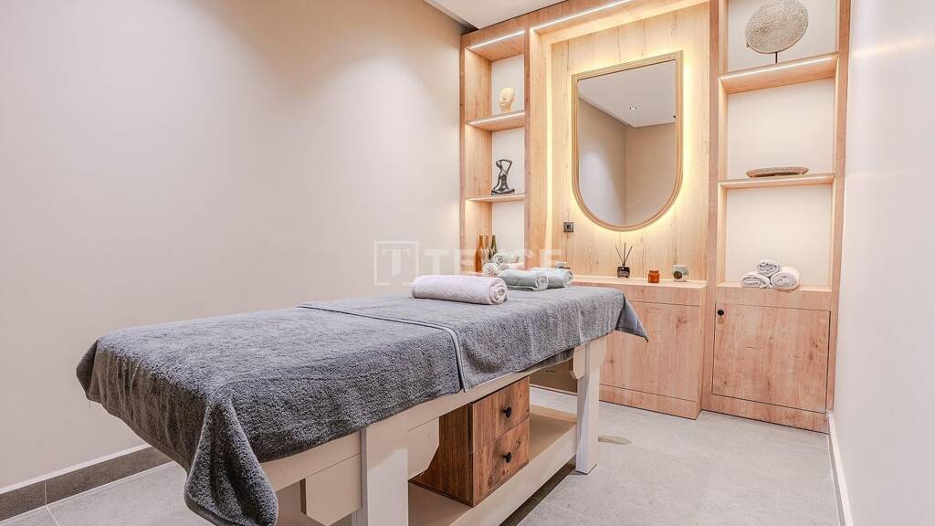 Der Komplex befindet sich in einem hotelähnlichen, einstöckigen Gebäude mit atemberaubendem Panoramablick und umfasst einen beheizten Infinity-Außenpool, ein Kinderbecken, eine Sauna, ein türkisches Bad, einen Massageraum, einen Entspannungsbereich, eine Vitaminbar, Umkleideräume, Duschen, einen Lobbybereich, zwei Aufzüge pro Block, ein Fitnesscenter, einen Kinderspielplatz, einen Landschaftsgarten, einen 24/7-Sicherheitsdienst, ein Videoüberwachungssystem, Satelliten- und Internetinfrastruktur, Außenparkplätze, eine Tiefgarage mit 14 Stellplätzen, einen Generator für unterbrechungsfreie Stromversorgung und ein Verwaltungsbüro vor Ort.