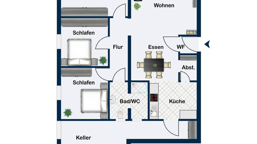- Bodenbelag: Fliesen, Laminat