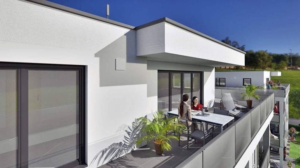 Das Wohngebäude wurde in moderner, geradliniger Architektur entworfen. Großzügige, teilweise bodentiefe Fensterflächen führen zu lichtdurchfluteten Wohnungen, in denen Sie sich wohlfühlen werden.