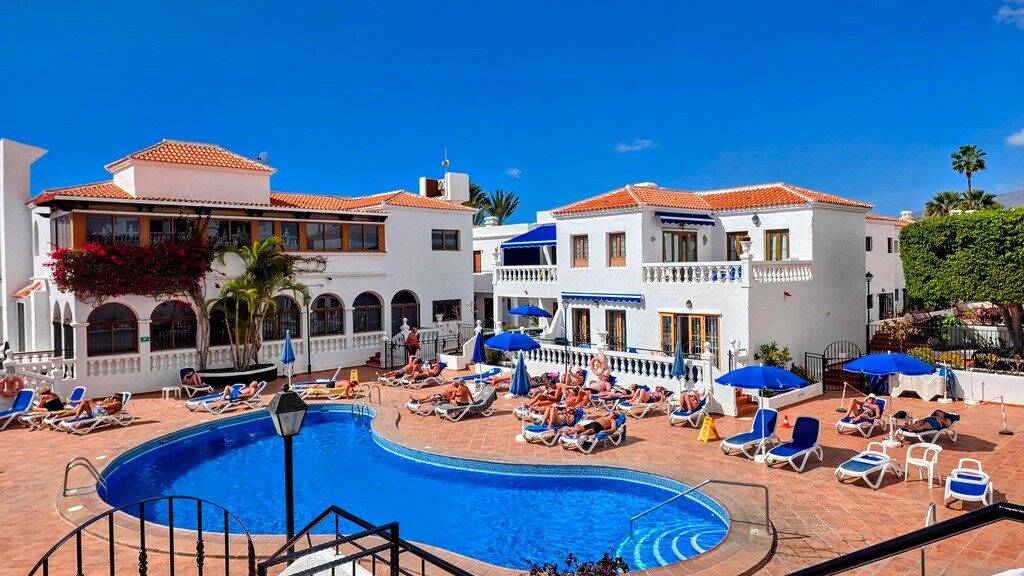 Royal Palm ist ein gut etabliertes und beliebtes Komplex in Los Cristianos, bekannt für attraktive Poolbereiche und zentrale Lage.
