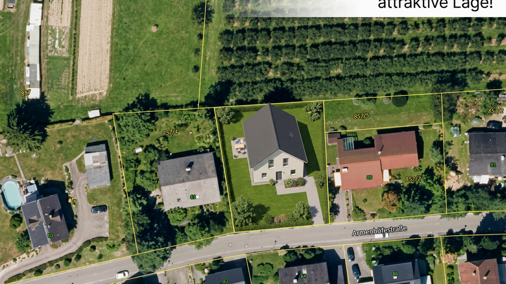 In einer ruhigen Lage von Renchen-Ulm, direkt am Ortsrand gelegen, besticht dieses großzügige Areal durch seine exponierte Position. Der Standort bietet einen unverbaubaren Ausblick auf die umliegende Hügellandschaft und die charakteristischen Obst- und Weinbaugebiete der Region. Die Lage am Fuße des Schwarzwaldes garantiert einen hohen Freizeitwert; Wander- und Radwege beginnen praktisch vor der Haustür. Trotz der naturnahen Ausrichtung ist die Anbindung an die regionale Infrastruktur hervorragend. Das Zentrum von Renchen mit sämtlichen Einkaufsmöglichkeiten, Ärzten und Dienstleistern ist nur wenige Fahrminuten entfernt. Für Familien bietet der Ortsteil Ulm kurze Wege zu Betreuungseinrichtungen und Bildungsinstitutionen wie Grundschule und Kindergarten. Die Anbindung an den Fernverkehr erfolgt effizient über die nahegelegene A5, was die Lage auch für Berufstätige in Richtung Karlsruhe oder Freiburg interessant macht. Das Grundstück selbst bietet aufgrund seiner Größe und der Randlage optimale Bedingungen für eine individuelle Bebauung, die den Fokus auf Ruhe und Naturbezug legt. Sachliche Vorzüge wie die geringe Lärmbelastung und die hohe Luftqualität unterstreichen die Werthaltigkeit dieser Lage im Ortenaukreis.
