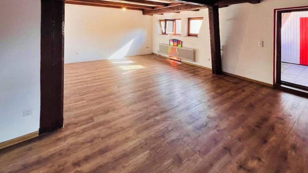Die charakteristischen Fachwerkwände haben viel Charme und insgesamt strahlt die Wohnung eine wohlige Atmosphäre aus.