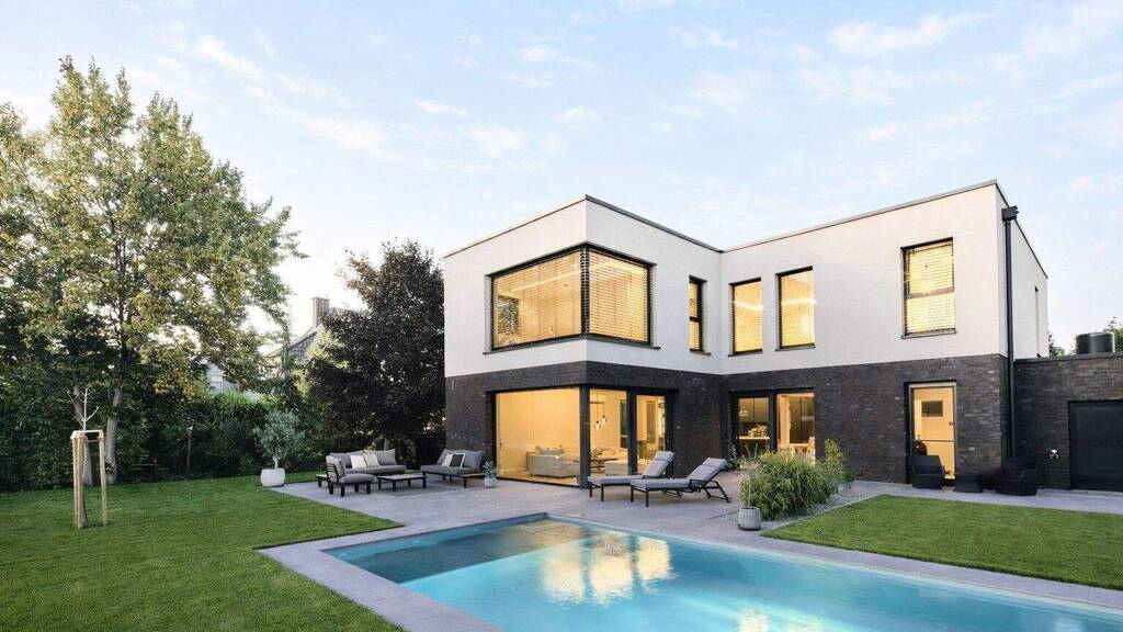 Der Außenbereich greift die Qualität des Innenraums konsequent auf. Großzügige Terrassenflächen, ein gepflegter Garten mit automatischer Bewässerung, eigenem Brunnen mit Vorratsbehälter und sehr sauberem Wasser sowie ein über die Wärmepumpe beheizbarer eingelassener Pool schaffen ein Umfeld mit hohem Freizeit und Erholungswert. Direkt vom Haus aus begehbar ist zudem die ca. 60 m² große Doppelgarage mit Wallbox. Zusätzlich besteht die Möglichkeit, eine weitere Garage auf dem angrenzenden Nachbargrundstück zu erwerben.